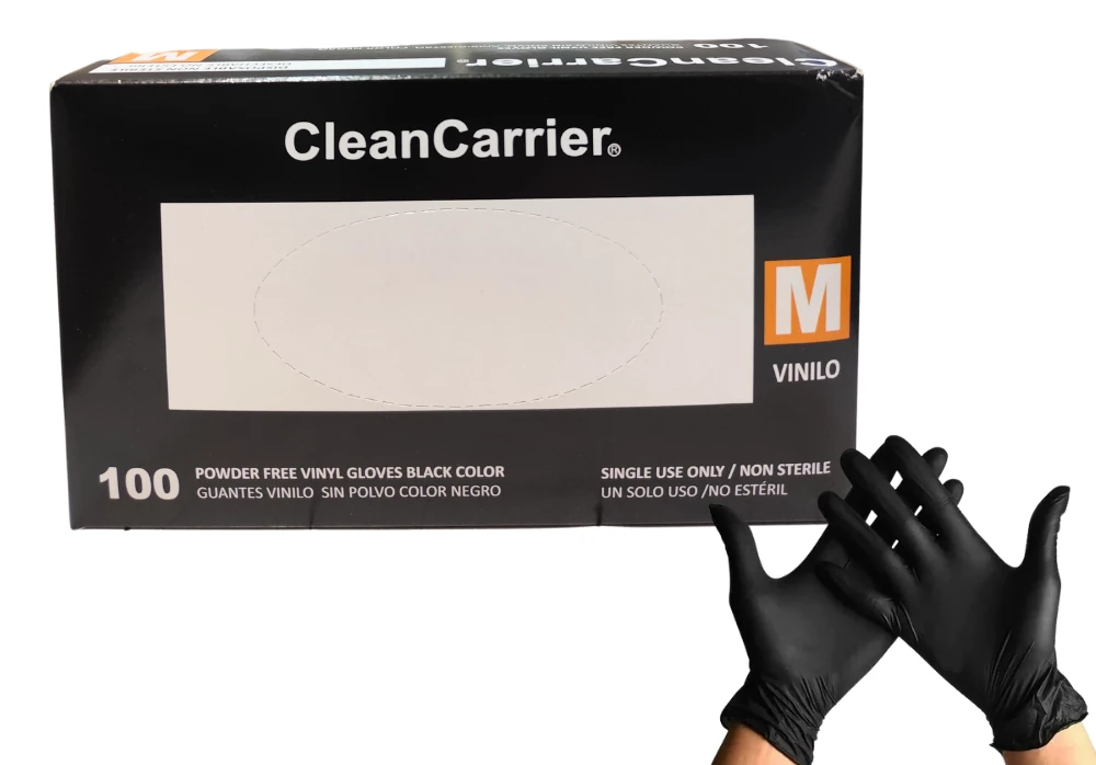 Elige una opción versátil con los Guantes de Vinilo Negro Clean Carrier, cómodos para cambios frecuentes. Son una barrera efectiva para tareas que no requieren la resistencia extrema del nitrilo.